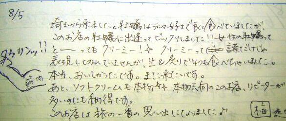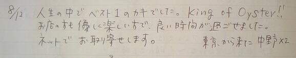 牡蠣が無くなれば上記時間を待たずに閉店する場合もあります。